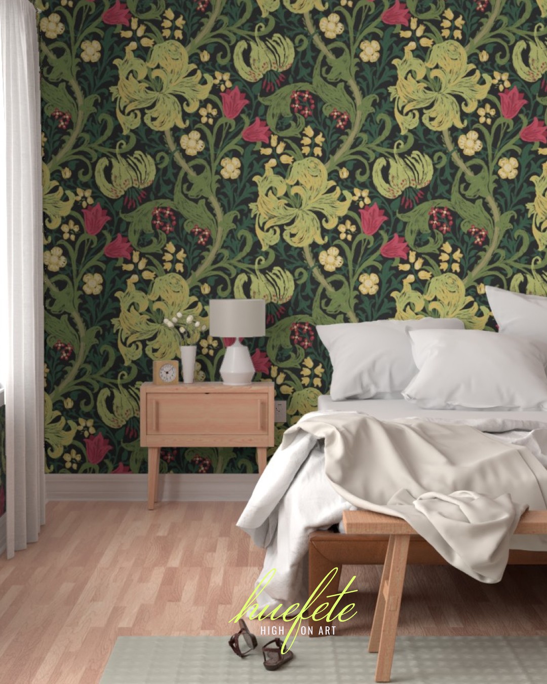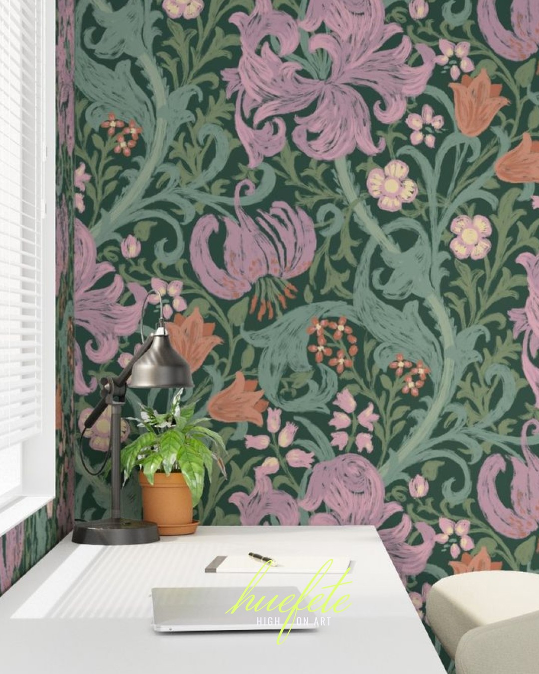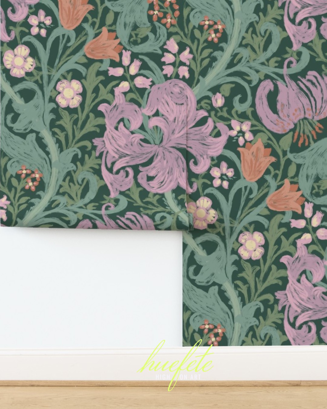 This collection is a reimagined version of William Morris's Golden Lily. Rendered in a sophisticated palette of soft pastel colors and visible brush strokes, this collection evokes a whimsical, classic, traditional yet modern vibe making it ideal for a range of home decor products from bedding, curtains to wallpapers.